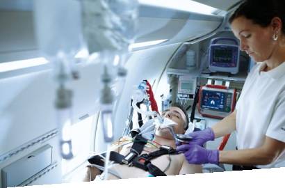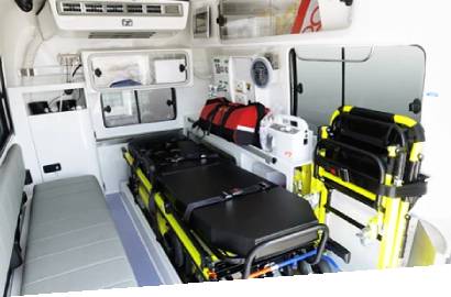 Ventilator ambulance service provides advanced life support with critical patient monitoring.